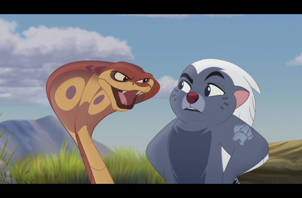 - Nala bezieht sich auf den ersten Kinofilm, als sie Kion erklärt, wie Simba und Scar um die Herrschaft über das Geweihte Land gekämpft haben.